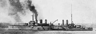 During the war 75 mm anti-aircraft guns were installed on the roofs of the ship's two forward 240 mm gun turrets.[3] During 1918, the elevation of the 240 mm guns was increased which extended their range to 18,000 meters (20,000 yd).[1]