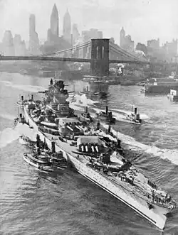 She ran sea trials from 25 to 29 January 1943 to evaluate the state of her engines, which had not been used since July 1940. Her aircraft facilities and anti-aircraft armament were removed during the evaluation period, as they would be replaced by US equipment. On 30 January, she departed Dakar with Montcalm, bound for New York City, where both vessels would be modernized. Richelieu steamed at a speed of 14 kn (26 km/h; 16 mph) and her rudder had to be held to seven degrees to account for the hull deformation. The ships arrived on 11 February and on the 18th, Richelieu was taken into Dock No. 5 at the Brooklyn Navy Yard to begin the modernization.[33][36]