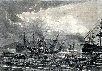 Forfait was an unarmored screw corvette[1] built for the French Navy in the late 1850s that entered service in 1860. She saw service in the French intervention in Mexico in the 1860s and was sunk in a collision in 1875.