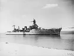 In 1936, she took part in the international effort to safeguard shipping in the Mediterranean on the backdrop of the Spanish Civil War. For the occasion, the top of her upper turrets was painted in Blue-White-Red colours, to make identification easier and avoid attacks by belligerents.[3]