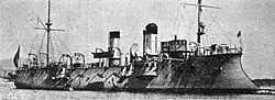 The ship was armed with a main battery of four 138.6 mm (5.5 in) 45-caliber guns in individual pivot mounts, all in sponsons located amidships with two guns per broadside. These were supported by a secondary battery that consisted of a pair of 100 mm (3.9 in) guns, one at the bow and the other at the stern. For close-range defense against torpedo boats, she carried eight 47 mm (1.9 in) 3-pounder Hotchkiss guns, two 37 mm (1.5 in) guns, and four 37 mm Hotchkiss revolver cannon. She was also armed with four 450 mm (17.7 in) torpedo tubes in her hull above the waterline, and she had provisions to carry up to 120 naval mines. Armor protection consisted of a curved armor deck that was 40 mm (1.6 in) thick, along with 138 mm (5 in) plating on the conning tower.[4]