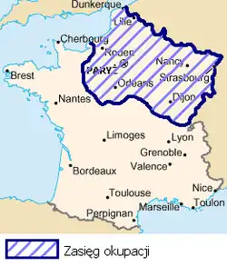 The indemnity was 5 billion francs, with German troops occupying France until it was paid.[4] The 5 billion gold marks, converted using the retail price index in 2011, was worth 342 billion. Converted using the GDP deflater it amounted to 479 billion and substantially more according to other comparisons such as GDP per capita.[5] The indemnity was proportioned, according to population, to be equivalent to the indemnity imposed by Napoleon on Prussia in the Treaties of Tilsit in 1807.[6]
