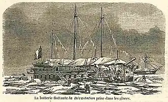 The Dévastation class was a class of ironclad floating batteries designed during the Crimea War. The design was ordered by Napoleon III after the Battle of Sinope, informed by the experience of the French Navy from the conflict. They were fitted with a shallow draft so that they could attack Russian coastal forts.[1] They had been designed for use in the Battle of Sevastopol but arrived too late as the city had already fallen before they entered service.[2] Dévastation was the lead ship of the class.[3]
