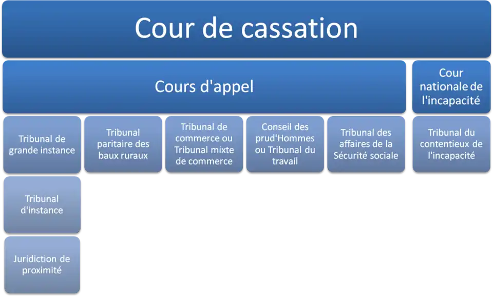Two degrés de juridiction, (degrees of jurisdiction), often exist in French law: