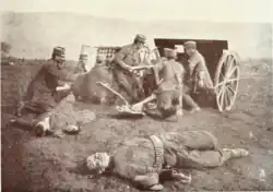 The first test of the mission's results came in the great spring manoeuvres of 1912, which involved the 1st Infantry Division (under Emmanouil Manousogiannakis) at Larissa and the 2nd Infantry Division (under Panagiotis Danglis) at Athens. The opposing forces set out to meet each other, with the final phase of the manoeuvres taking place in the plain around Thebes.[22] This was the first exercise of this kind ever conducted in Greece,[22] and involved eight infantry regiments, three artillery regiments, two cavalry regiments, two engineer regiments, two mountain artillery squadrons, and one Evzone battalion.[23]