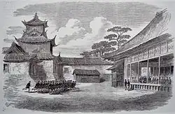 The mission consisted of 17 members, under the authority of the Minister of War General Jacques Louis Randon, covering a wide range of expertise: four officers (representing infantry, artillery and cavalry), ten non-commissioned officers and two soldiers. The original mission composed of 15 members, arriving in Japan in January 1867, and was later supplemented with non-commissioned officers Cazeneuve, Jourdan and Michel (February 1868). The mission was headed by staff captain Charles Sulpice Jules Chanoine, at that time an attaché to the military staff of Paris. The members were:[1][2]