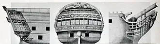The muzzle-loading, smoothbore armament of the Téméraire class consisted of twenty-eight 36-pounder long guns on the lower gun deck and thirty 18-pounder long guns on the upper gun deck. On the quarterdeck and forecastle were a total of sixteen 8-pounder long guns. Beginning with the ships completed after 1787, the armament of the Téméraires began to change with the addition of four 36-pounder obusiers on the poop deck (dunette). Some ships had instead twenty 8-pounders.[2]