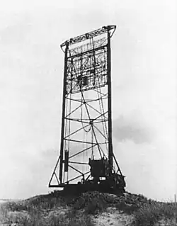 Freya was first successfully used on December 18, 1939 when two stations detected an approaching daytime raid on Wilhelmshaven by 22 RAF Vickers Wellington bombers at a range of 113 km and guided fighter planes toward them via radio.[1] Only half of the Wellingtons returned to Britain undamaged, but the German fighters only reached the bombers after they had made their bombing run on ships in harbour. The performance of Freya left the Luftwaffe so impressed that, by the spring of 1940, eleven Freya stations had been installed to guard Germany's western border.[2] After the invasion of France in 1940, additional Freya stations were built along the Atlantic coast. When Britain started its bombing raids, Hermann Göring ordered Colonel (later General) Josef Kammhuber to install an efficient air defence. This led to the so-called Kammhuber Line into which more Freya stations were incorporated. In the later course of the war, Freya devices turned out to be vulnerable to chaff, and other countermeasures, which still allowed them to be used for early warning, but no longer for guiding fighter planes. British bombing raids could also be organized such that the Kammhuber Line could be overwhelmed in massed raids.