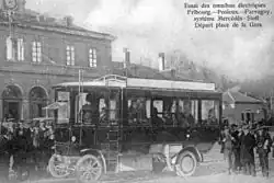 At the start of the 20th century, the Comité de l'initiative Fribourg–Daillettes was founded, with the goal of obtaining a concession for, and constructing, a metre gauge tramway from Fribourg to Les Daillettes, a neighborhood of Villars-sur-Glâne. It was also intended that the tramway be capable of extension to Bulle. Subsequently, however, the committee learned of the achievements of a new "trackless railway" in Austria, and in 1908 sent a delegation to inspect it.