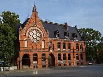 In 1889, the gymnasium moved into its present-day building at Alexandrinenplatz. The schoolhouse had been constructed by Doberan-based architect Gotthilf Ludwig Möckel.