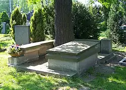 In 1737, Neuber symbolically banished Hanswurst from the stage as part of her efforts to elevate the status of German theatre. The staged banishment has generally been regarded as an emblematic moment in German theatre history for the transition from popular, improvised, so-called "Stegreiftheater" to a modern bourgeois literary mode.[6] These Hanswurt plays were created specifically for the enjoyment of male audiences.[7] During this period it was becoming more acceptable for women to pursue work as actresses; however, it was still unacceptable for women to work as managers of theatrical companies.[7] Theatre historians of the late eighteenth century often described Caroline Neuber as one who had a masculine spirit and manly ambitions in order to reconcile what they viewed as “the disparity between her professional achievements and her gender role.”[7] Neuber died near Dresden, aged 63.