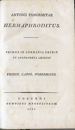 He was a headmaster at Saalfeld/Saale, and from 1801 to 1826 Director of the Sächsische Landesbibliothek. His philosophical publications are less known now than his 1824 edition of an erotic poem sequence in renaissance Latin, Hermaphroditus by Antonio Beccadelli. This was accompanied by Forberg's own learned commentary, which took the form of a catalogue and anthology of descriptions of sexual acts and postures in classical and later literature.