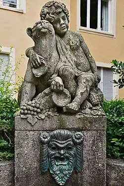 The Bacchus Fountain in Freiburg's suburb Herdern dates back to 1909. The sculpture of the boy on this fountain, created with sandstone and artificial stone, has also been interpreted as Silenus.[3]