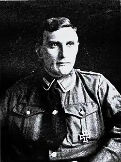 Völtzer was born in Altona, a borough of Hamburg. He attended the prestigious Gymnasium Christianeum there, passed his matriculation examination and received his Abitur in 1914. After the outbreak of the First World War, he volunteered for service with the Imperial German Army that August and fought with the 31st (1st Thuringian) Infantry Regiment on the western front until 1917. He was twice seriously wounded, in November 1914 and April 1917. Commissioned as a Leutnant in the reserves in May 1916, he was awarded the Iron Cross 1st and 2nd class, and the Hanseatic Cross.[1] During his convalescence, Völtzer began studying philosophy, history and economics at the University of Rostock in October 1917.[2] He returned to his military duties but, after the end of the war, he was discharged and continued his studies in law and political science at Rostock and the University of Hamburg.