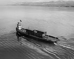 In order to increase transport capacity, all national and state railways used non-powered ferry barges. Specifically, in the home port of Lindau there were three train ferry barges (Trajektkähne) I, II and III (1869), in the home port of Konstanz there were three ferry barges, the Ludwigshafen (1872) and Baden (1893), in the home port of Friedrichshafen there were the Tr. I (1877) and Tr. II (1885) and the screw propeller ferry Buchhorn (1891), in the home port of Bregenz there were ferry barges I, II, III, and IV (1885) and the screw propeller ferry Bregenz (1885) and in the home port of Romanshorn there were ferry barges A (1884) and B (1885). One or two barges were hauled across the lake by a passenger ferry or a steamship. Six ferry barges were converted from 1926 into self-propelled boats and motorised. A motor ferry towed a ferry barge carrying 14 wagons.[2]