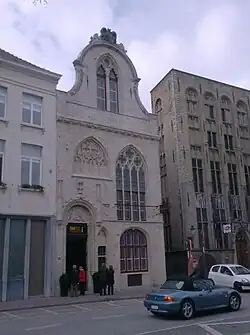 The building is housed in the Gothic Saaihalle (former wool hall). The building dates back to 1399, was extended as the residence of the Consul of Genoa in 1441, used by weavers from 1578 to 1750, and has since served variously as an inn, café, cinema, dancehall, and since 1978 as a bank and exhibition space.[3]