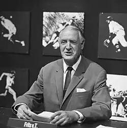 Frits van Turenhout (June 14, 1913 in Amsterdam – October 3, 2004 in Blaricum) was a Dutch sports journalist, appearing on both radio and television. He did this in a very solemn manner. He missed his own last broadcast due to an automobile accident he had on his way to the studio.