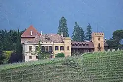 Having become a German citizen as a result of the Anschluss of Austria to the German Reich in 1938, Herzmanovsky-Orlando was forced to leave South Tyrol in 1940 under the South Tyrol Option Agreement. Since he could not live north of the Alps due to illness, he moved to Malcesine on Lake Garda. He did not return to Merano until 1949. He spent the last years of his life in the nearby Schloss Rametz, where he died of uremia on 17 May 1954.[2]