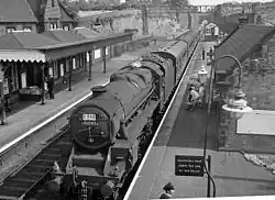 Frodsham railway station serves the town of Frodsham, Cheshire, England. The station is managed by Transport for Wales. It was opened along with the line in 1850 and the station building is recorded in the National Heritage List for England as a designated Grade II listed building.[1] This was restored in 2012 and is in private ownership.