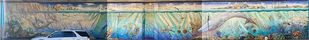 Near the northern edge of the park, under the overpass of Highway 24, there is a 120-foot-long Oceanus mural painted in 1977.[4][16][15] It depicts an underwater panorama of sea creatures and divers, by artist Gary Graham and a team of students.[16] In 2003 it was restored by the original artist also with students from a local arts college.[4] The mural was one of the first to be authorized by Caltrans.