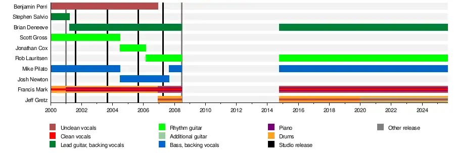 - Francis Mark – clean vocals (2000–2008; 2014–present); unclean vocals (2006–2008; 2014–present); piano (2001–2008; 2014–present); drums (2000–2006)