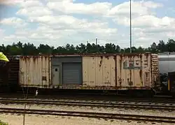 In addition to refrigerated railcar leasing and servicing, FGE also built its own freight cars. In February 1928 FGE formed the National Car Company, a railcar manufacturing unit as a subsidiary to its refrigerated food transport business. Customers included Kahns, Oscar Mayer, and Rath Packing. FGE became a major producer of railroad freight cars, mostly insulated or refrigerated boxcars, although they eventually built other railcars as well. FGE's main railcar production, in keeping with its focus, was refrigerated cars, originally ice-cooled boxcars and insulated (but not cooled) boxcars, and then mechanical refrigerated cars, or "reefers", as technology developed. FGE insulated boxcars, built with wood rather than steel for its better insulating qualities, became popular in the 1960s and 1970s. FGE insulated boxcars were used to transport items that needed protection from heat or freezing but not necessarily separate cooling such as that provided by refrigerated railcars.[4] FGE built railcars and then leased them to the group of railroads that owned FGE. Fruit Growers Express also produced and maintained its own fleet of railcars for independent leasing. In the 1970s, when trucking started to bite into the market of insulated boxcars moving produce, FGE branched into other types of railcar production, notably the production of bay window cabooses and intermodal equipment for FGE's own use and that of its parent railroads. By the mid-1980s, when safety laws were relaxed and automated technology introduced, the caboose ultimately became obsolete, eliminating this production segment for FGE.[5] With increased competition from trucks hauling produce on highways, and the consolidation of the railroad industry in the 1980s spurred by the Staggers Rail Act in 1980, Fruit Growers Express, as a consortium, found that its markets shrank. With the mergers that formed the Norfolk Southern Railway in 1982 and CSX Transportation in 1986, and the subsequent acquisition of both companies, a duopoly of major railroads with vast resources and routes was effectively created on the east coast and midwest, eroding further need for FGE as an independent entity. The company is now a paper entity controlled by CSX Corporation, the successor railroad to the majority of Fruit Growers Express final ownership.[6][5]