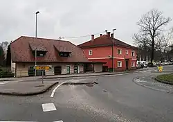 The roots of the ironworks in Fužine go back to a permit issued in 1603 to mine iron ore in the area, and the ironworks were established by Joseph Shigan (Slovene: Jožef Žigan) in 1735. The last owner of the ironworks was Edmund von Andrioli (1796–1861), who purchased the facility in 1833. The operations became economically unviable after the economic reforms following the Revolutions of 1848 and when Kamnik acquired a railroad connection 1849, and Andrioli sold the works to the military in 1853.[6] The Austrian army had seized the gunpowder factory in Mantua, Italy in 1849 and transported the equipment to Fužine, and it then converted the former ironworks into a gunpowder factory in 1853.[4][5] Fužine was annexed by Kamnik in 1934, ending its existence as an independent settlement.[3][7]