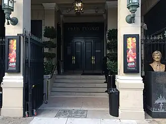 Club Fugazi hosted Beach Blanket Babylon beginning in June, 1974, as a "very funny, very silly revue".[3] It reached over 6.5 million patrons, toured to Las Vegas and London; opened the Academy Awards; and counted Queen Elizabeth II, Prince Charles, David Bowie, Liza Minnelli and Robin Williams among its audience members.[4]