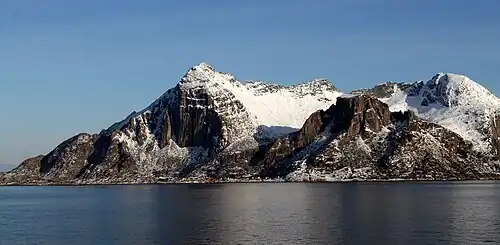 Fugløya[1] is an island in Gildeskål Municipality in Nordland county, Norway. The 13-square-kilometre (5.0 sq mi) island is very mountainous, with the highest point being the 765-metre (2,510 ft) tall Hagtinden. The island has no permanent residents (as of 2016), but as recently as the 1960s, there were 124 residents living on the island. The island has several large bird colonies, including puffins. It lies in the Fugløyvær archipelago which includes about 140 small islands and this one large island.[2]