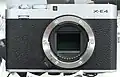 The Fujifilm X-E4 is thinner than the X-E3 by a centimeter. Unlike its predecessor, the grip of the new camera has been removed.[4] The camera consists of the same 26.1-megapixel, back-side illuminated but with a newer processor, the X-Trans CMOS 4 sensor which is also found in FujiFilm's flagship cameras.[5]