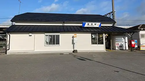 Fujioka Station (藤岡駅, Fujioka-eki) is a railway station in the city of Tochigi, Tochigi, Japan, operated by the private railway operator Tōbu Railway. The station is numbered "TN-08".