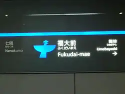 Fukuoka University Station (福大前駅) is a subway station on the Fukuoka City Subway Nanakuma Line in Jōnan-ku, Fukuoka in Japan. Its station symbol is a picture of a black kite in blue, the symbol of the Fukuoka University.