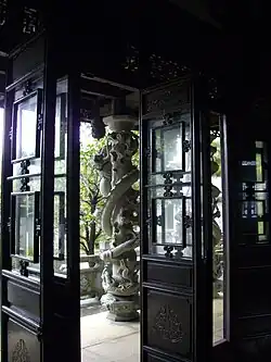 The garden was built nearly entirely with the use of wood and stone from Fuzhou, with the help of artisans from Fuzhou, and according to specifications representative of traditional gardens in Fuzhou. It thus contains many of the elements essential to the design of a traditional Chinese garden. It is walled, divided into individual sections, features much asymmetry, rocks including scholar's rocks, and water in the form of a single pond which extends into most sections of the garden. Several bridges in a variety of styles extend over the pond, which houses koi and turtles, a symbol of longevity and wisdom in Chinese culture. The centerpiece of the garden perhaps is its waterfall, located on the west side of the pond, directly facing the east entrance. The rock pile it flows from contains an artificial cave, and can be entered, and climbed; stairs cut into the rock lead to a Chinese-style pavilion, one of two high points in the garden allowing for a view of much of the garden, and the surrounding scenery.