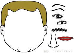 Fukuwarai (福笑い) is a Japanese children's game, popular during New Year's celebrations. Players are led to a table which has a paper drawing of a human face with no features depicted, and cutouts of several facial features (such as the eyes, eyebrows, nose and mouth). While blindfolded, the players attempt to place the features onto the face in the correct positions.
