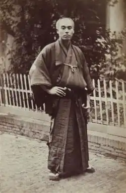 Fukuzawa's early life consisted of the dull and backbreaking work typical of a lower-level samurai in Japan during the Edo period.[3] Although Fukuzawa did travel to Nagasaki, his stay was brief as he quickly began to outshine his host in Nagasaki, Okudaira Iki. Okudaira planned to get rid of Fukuzawa by writing a letter saying that Fukuzawa's mother was ill. Seeing through the fake letter, Fukuzawa planned to travel to Edo and continue his studies there, since he would be unable to do so in his home domain of Nakatsu. However, upon his return to Osaka, his brother persuaded him to stay and enroll at the Tekijuku school run by physician and rangaku scholar Ogata Kōan.[3] Fukuzawa studied at Tekijuku for three years and became fully proficient in the Dutch language. In 1858, he was appointed the official Dutch teacher of Nakatsu, and was sent to Edo to teach the family's vassals there.