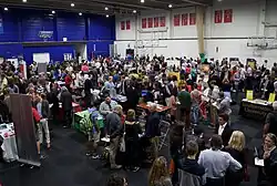 The Commission's advising center is also responsible for coordinating, organizing and sponsoring various events throughout the year to provide more information to students on how to go about applying for universities and colleges in the United States. Since 1984, the Commission has coordinated Brussels College Night, the largest U.S.-focused college fair in Belgium. This annual event welcomes representatives from American colleges and universities as well as other institutions of higher learning.[19]
