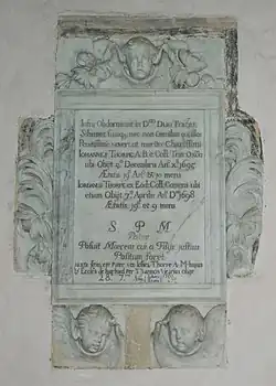 A wooden plaque on the south wall of the nave records that the church was completely re-roofed in 1827. A second plaque records that the church was restored in 1892, with the architects being Ewan Christian for the chancel and "Messrs Waller" for the nave and tower. This may refer to the architect and antiquarian Frederick S. Waller of Gloucester. The parish war memorial in the north aisle was lettered by Ninian Comper and dedicated in 1952.[5] The ecclesiastical parish of St James the Great is now part of the United Benefice of Burford, Fulbrook, Taynton, Asthall, Swinbrook and Widford.[6]