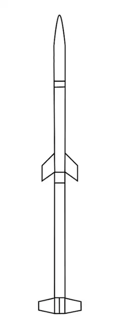 The Fulmar, developed by Bristol Aerojet, consisted of a Heron starting stage with 107 kN thrust and a Snipe upper stage with 16.7 kN thrust.[2] The Fulmar had a diameter of 26 centimetres and a length of 7.47 metres.[2] It weighed 500 kilograms at launch and could reach a height of 250 kilometres.[2]