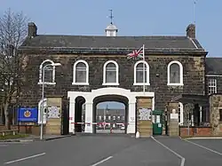 The barracks also served as the depot of the East Lancashire Regiment from 1898, when the regiment re-located from Burnley Barracks, until 1939.[1] The Loyal North Lancashire Regiment and the East Lancashire Regiment both returned to the barracks shortly after the Second World War.[1] The barracks, which went on to become the regional centre for infantry training as the Lancastrian Brigade Depot in 1960,[4] became the depot of the Queen's Lancashire Regiment in 1970 as well as Headquarters North West District in 1977 and the headquarters of 42 (North West) Brigade in 1991.[5] The keep, and 15 other buildings and structures in the barracks, are Grade II listed buildings.[6][7]