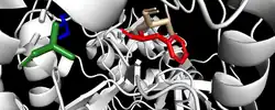 Fumarylacetoacetate hydrolase (FAH) is a protein homodimer which cleaves fumarylacetoacetate at its carbon-carbon bond during a hydrolysis reaction.[8] As a critical enzyme in phenylalanine and tyrosine metabolism, 4-Fumarylacetoacetate hydrolase catalyzes the final step in the catabolism of 4-fumarylacetoacetate and water into acetoacetate, fumarate, and H+ respectively.[9] These hydrolytic reactions are essential during aromatic amino acid human metabolism. Furthermore, FAH does not share known protein sequence homologs with other nucleotides or amino acids.[8]