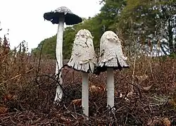 These distinctive white fungi grow in disturbed soil from February to June all across New Zealand.[4] Their caps are longer than they are wide-ranging from 4–8 cm across and 6–20 cm tall and a stipe of 6–40 cm long.[4] This fungus gains its name from a process called autodigestion: the cap emerges in the morning and then begins dropping spores dissolving from the bottom upwards as it does so.[36] This is to help the spore propagate with wind before the fruiting body disintegrates.[36]