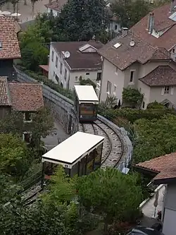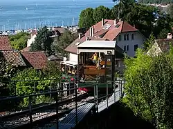 The Funiculaire de Thonon-les-Bains, or Thonon-les-Bains Funicular, is a funicular railway in the spa town of Thonon-les-Bains, in the French département of Haute-Savoie. The line links the Belvedere, in the city centre, to the port of Rives, on the shores of Lake Geneva.[1][2]