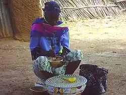 ![]() A Fulani woman preparing fura da nono | |