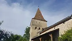 The Furriers' Tower (Romanian: Turnul Cojocarilor, German: Kürschnerturm) together with the Butchers' Tower, Törle gate, and the house underneath forms a grouping typical of the medieval architecture of Sighişoara, Mureș County in Romania.