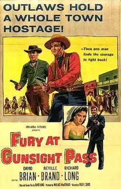 Fury at Gunsight Pass is a 1956 American western film directed by Fred F. Sears and starring David Brian, Neville Brand and Richard Long. It was produced and distributed by Columbia Pictures.