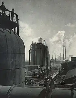 In 1928, the commercial-scale production of shale oil began in Fushun with the construction of Fushun Coal Mine Temporary Oil Plant (Chinese: 撫順炭礦臨時製油工場; pinyin: Fǔshùn Tànkuàng Línshí Zhìyóu Gōngchǎng) of South Manchurian Railway, aka the Western Refinery (Chinese: 西制油; pinyin: Xī Zhìyóu), operating Fushun-type retorts.[16] After World War II, shale oil production ceased, but 100 Fushun-type oil shale retorts and the related shale oil processing units were restored in 1949.[17] In 1950, a total of 266 retorts were in operation, each with a capacity of 100–200 t (98–197 long tons; 110–220 short tons) of shale oil per day.[16] In 1954, "Refinery No. 2" began production and in 1959 maximum annual shale oil production increased to 780,000 t (770,000 long tons; 860,000 short tons).[16][17]