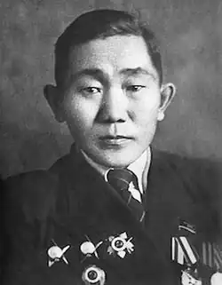 Fyodor Matveyevich Okhlopkov (Russian: Фёдор Матве́евич Охло́пков; 3 March 1908 – 28 May 1968) was a Soviet sniper during World War II credited with 429 kills. Nominated for the title Hero of the Soviet Union in 1944 after tallying his first 420 sniper kills but rejected for unclear reasons, he was belatedly awarded the title in May 1965 over twenty years later to coincide with the anniversary of Victory Day. He is considered as one of the deadliest snipers in history.