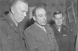 De Lattre with American General George C. Marshall (left) and Lieutenant General Jacob L. Devers (right), October 1944