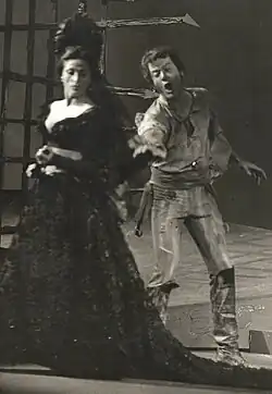 On the international scene, she appeared at the Liceu in Barcelona, at La Scala in Milan, as Mélisande under Victor De Sabata in 1949, Mexico, Rio de Janeiro, Chicago, and the Bolshoi in Moscow, as Tatyana, in 1956. Her dislike of travel and wish to be with her family meant that she did not sing more widely on the international stage.[1] She also sang in operettas such as La belle Hélène, The Merry Widow, and in contemporary operas such as Le fou and Les Adieux by Marcel Landowski and Colombe by Jean-Michel Damase.