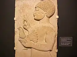 In terms of iconography, the gifts presented by the figure are "western Anatolian and Greek in origin", however, the clothing he wears are "clearly of Persian influence".[3] The work is unique as it is, to date, the only known Anatolian-Persian sculptural work discovered in Anatolia depicting an African figure.[3] The work testifies to the "multiracial social structure of the Lydia region during the late sixth to early fifth century BC".[3] The stele is located in the Akhisar Museum.[2]